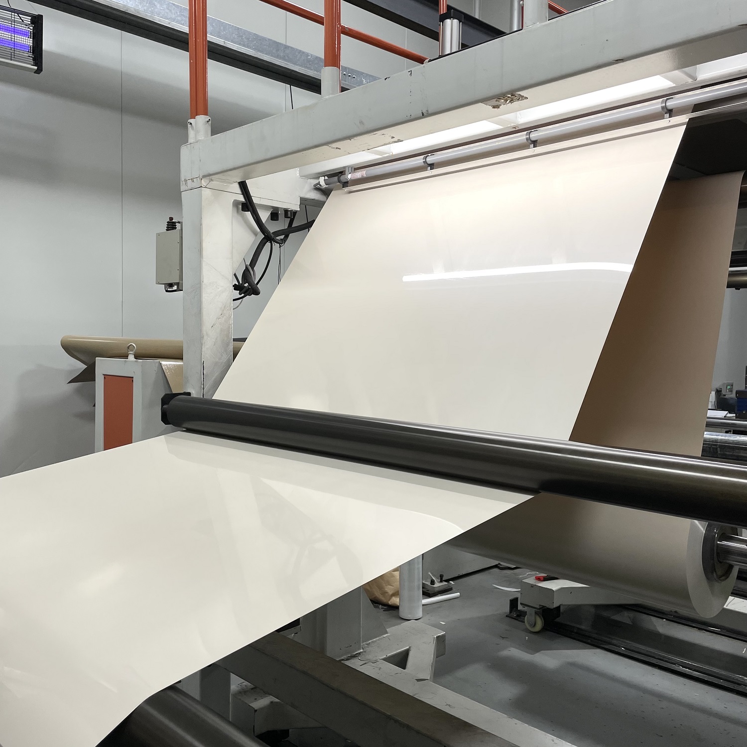 PETG高光膜膚感膜厚薄度均勻,表面沒有晶點和橫味,涂布后很容易與木板貼合,不會起泡,不會貼不平,是木板貼合廠,家俱廠首選的貼合用裝飾膜。